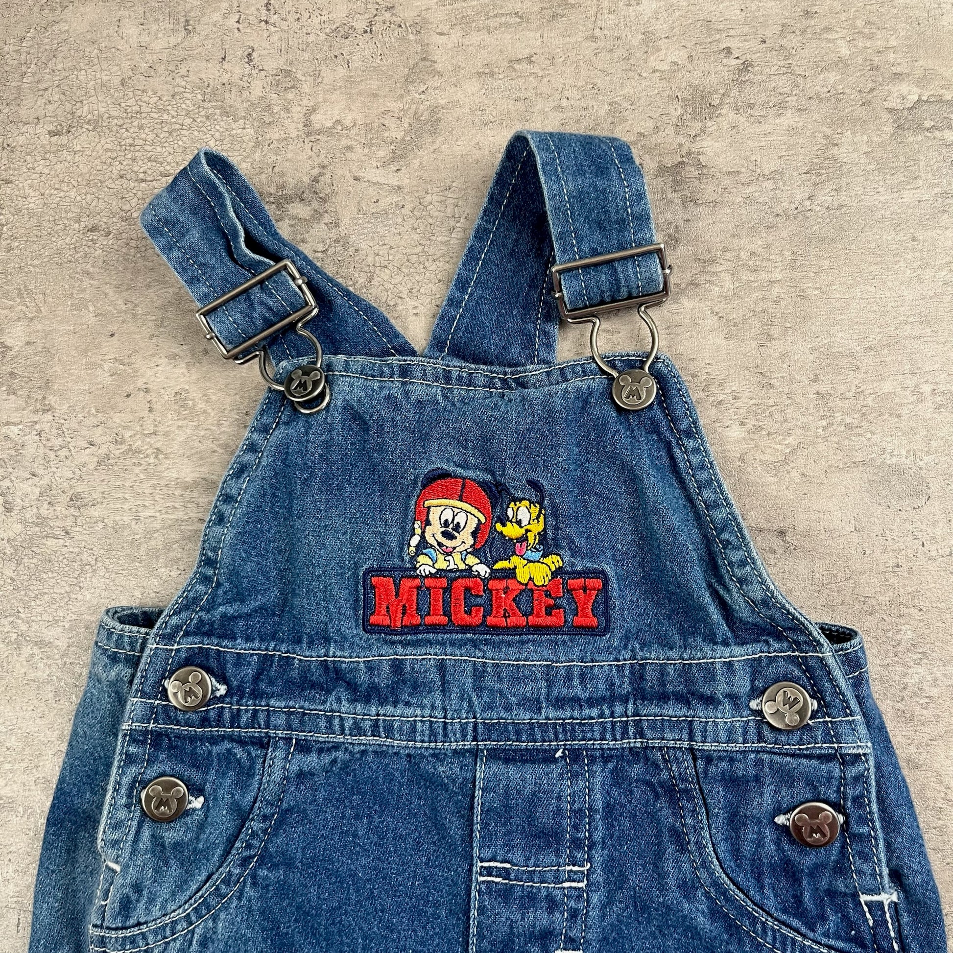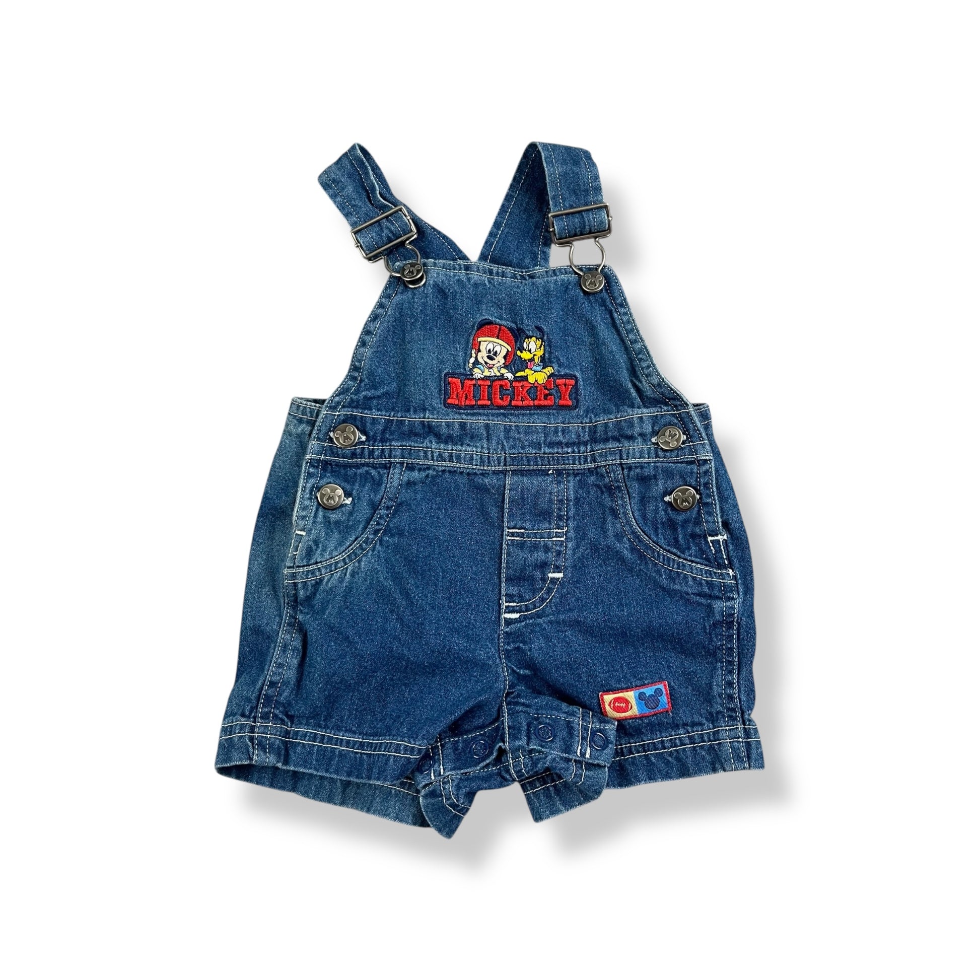 Y2K Baby Mickey & Pluto Denim Shortalls 3-6 Months